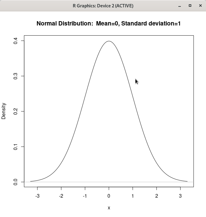 main=paste("Normal Distribution: Mean=0, Standard deviation=1"))