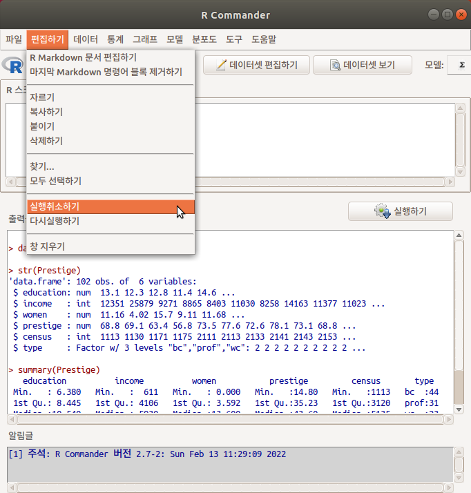 간혹, 복잡해진 출력창을 지우려다가 입력창을 지우는 경우가 있을 수 있다. 마우스의 커서가 있는 곳이 지워지기 때문이다. 이 때 <실행취소하기> 기능을 이용하여 잘못 지워진 창의 내용을 되살릴 수 있다.