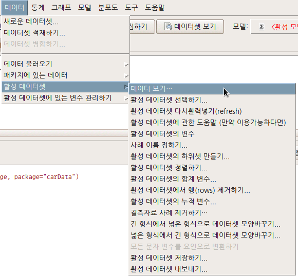 데이터 > 활성 데이터셋 > 데이터 보기...