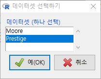 아래 화면은 Prestige 데이터셋이 선택된 상황이다. 예(OK)를 누른다.