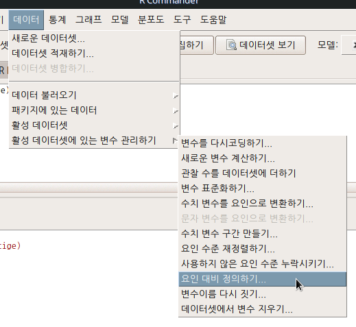 데이터 > 활성 데이터셋의 변수 관리하기 > 요인 대비 정의하기...