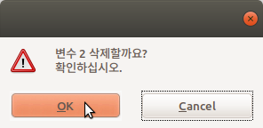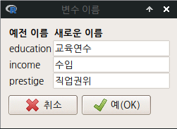 잘못 작업된 변수 또는 분석에 필요없는 변수를 삭제하는 기능이다. 삭제하고자 하는 변수를 선택하고 예(OK) 버튼을 누른다.
