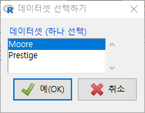 아래 화면은 Prestige 데이터셋이 선택된 상황이다. 예(OK)를 누른다.