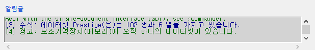 메모리에 탑재된 데이터셋이 하나인 경우 다음과 같은 경고문을 알림글에서 보게 된다.