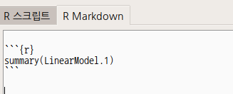 summary(LinearModel.1)이 스크립트의 마지막 블록이다. 이 줄을 지우는 기능이다.