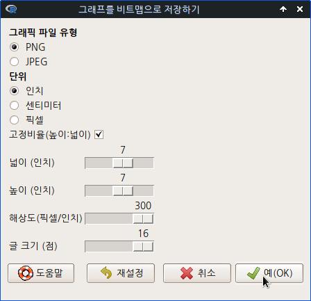 <선택기능> 창에 있는 많은 선택 기능은 기본설정으로 놓고 오른쪽의 <그림 이름표>에 그래프의 내용적 이해를 높이고자 관련 사항을 추가적으로 입력하자.