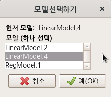 <활성 모델 선택하기...>기능을 선택하면 아래와 같은 모델 목록창이 등장한다. 목록에서 하나를 선택한다.