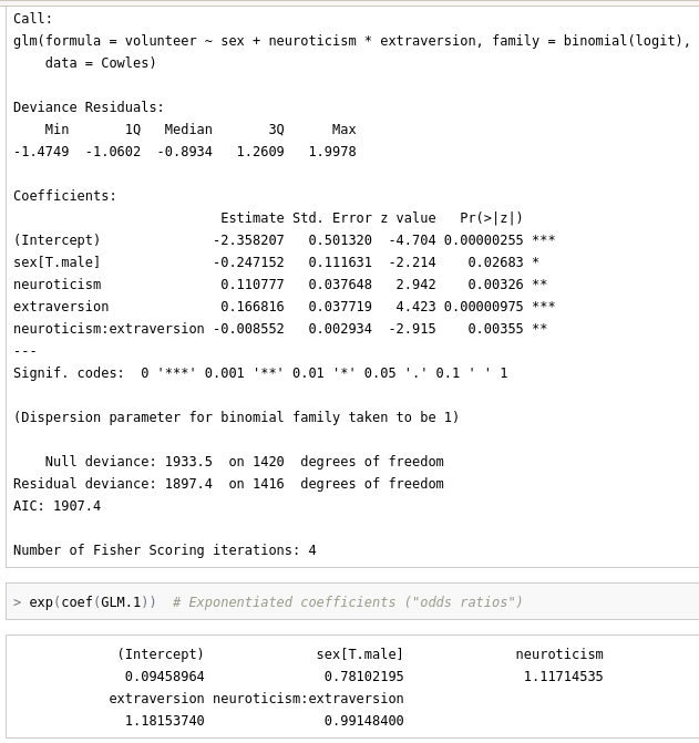 exp(coef(GLMM.1)) # Exponentiated coefficients ("odds ratios")