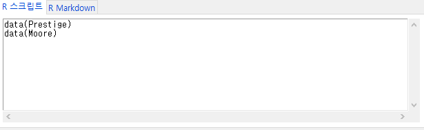 R Commander 화면에서 R 아이콘 옆에 '데이터셋: Prestige' 이 뜬다.