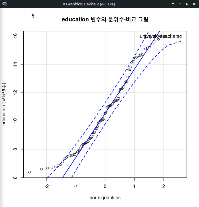 ?qqPlot # car 패키지의 qqPlot 도움말 보기