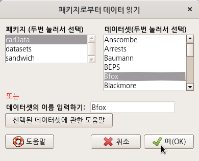 Bfox 데이터셋이 활성화되었다면, 도움말 기능을 통하여 데이터셋의 정보를 확인할 수 있다.