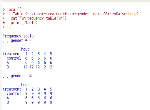 xtabs(~ Type + Subj, data = d.ergo) # 4 replicates each