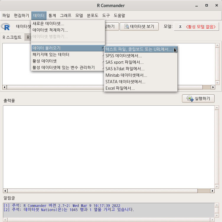 데이터 > 활성 데이터셋 > 데이터 보기...