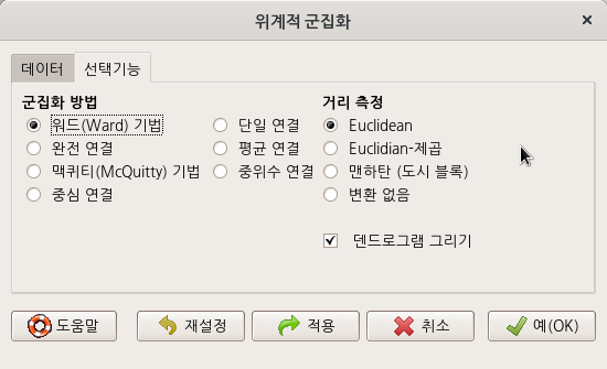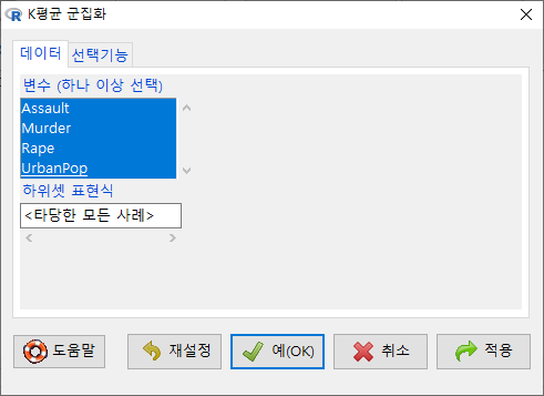 그럼, R Commander의 화면 메뉴 기능에서 '모델 > 관찰 통계를 데이터에 추가하기...' 기능이 활성화된다. 해당 메뉴 기능을 선택하면 아래와 같은 선택 창이 등장한다. 이 통계치들은 lm() 함수를 이용하여 모델을 생성하는 과정에서 함께 연산된 값들이며, 이 값들을 Prestige 데이터셋에 추가할 것인가를 질문받게 된다.
