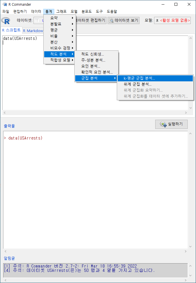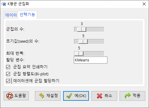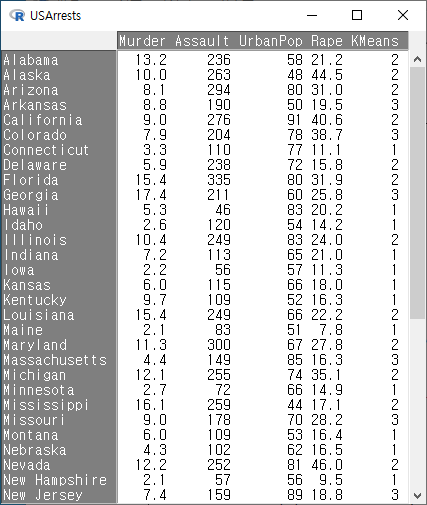 R Commander 화면에서 <데이터셋 보기>를 선택하면 관찰 통계치가 추가되어 있음을 아래와 같이 알 수 있다:
