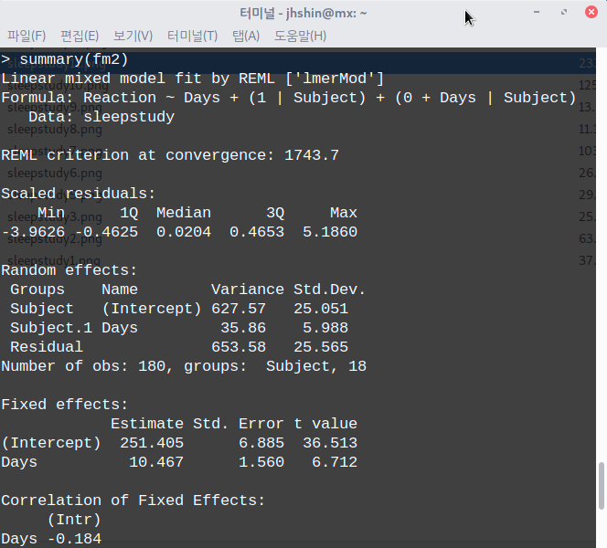 아래는 example(sleepstudy) 입니다.