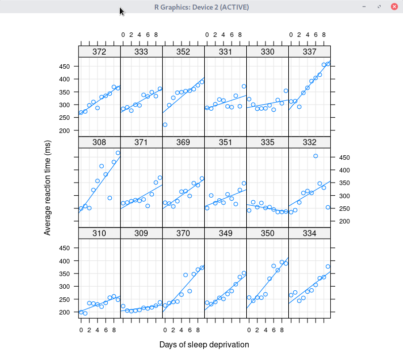 xyplot(Reaction ~ Days | Subject, sleepstudy, type = c("g","p","r"),