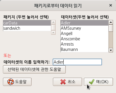 위의 화면은 MASS 패키지가 적재되었고, 또 그 안에 포함된 housing 이라는 데이터셋이 활성화된 상태에서 '도움말 > 활성 데이터셋에 관한 도움말 (만약 이용가능하다면)' 메뉴 기능을 이용할 수 있다는 것이다. 해당 메뉴를 선택하면, 새로운 웹 브라우저 창이 등장하면서, 활성 데이터셋의 도움말이 제공될 것이다.